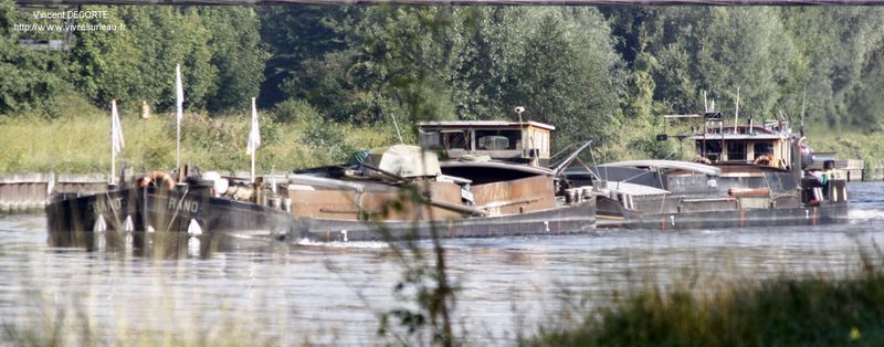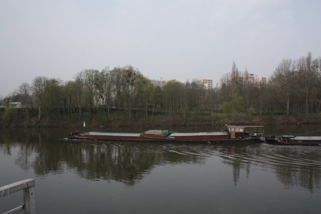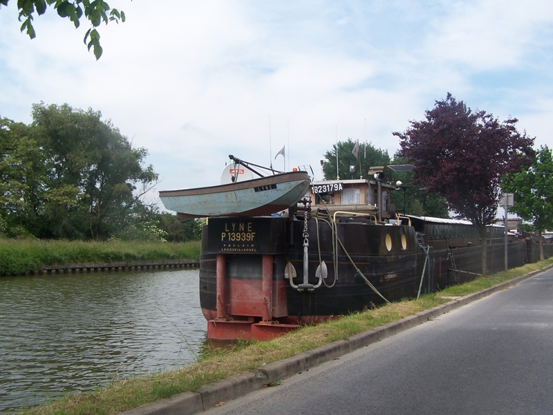 Je prends la voiture, je file le long du chemin du halage, et je rencontre un convoi amarre.