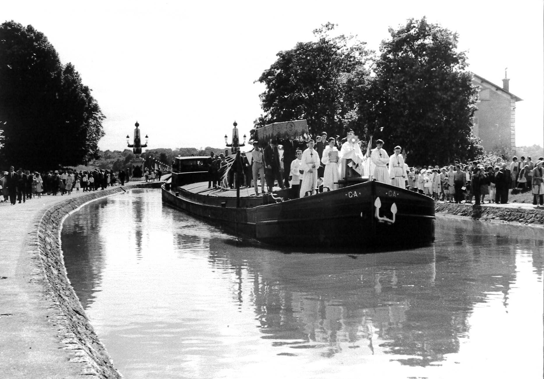 -baptême du pont-canal, après reconstruction suite aux évènements de la guerre.