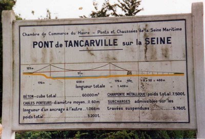 une autre photo de ce pont qui a été la fierté de toute une région avant que ne soit construit le pont de normandie,len pont d aquitaine construit sur le meme principe a lui une pile en garonne,pas tancarville.