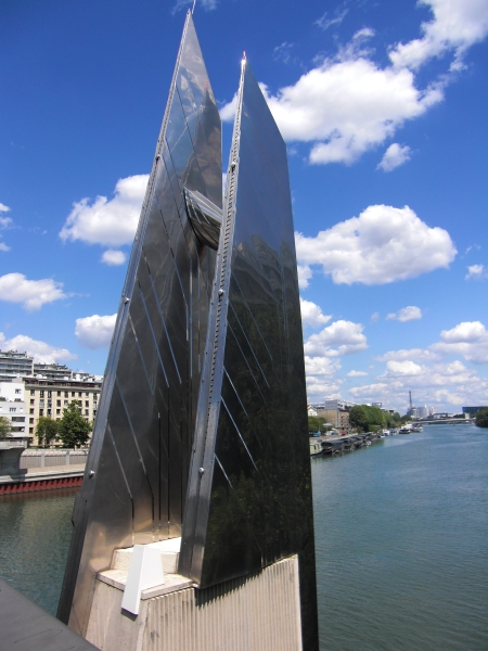 Je suis donc sur le pont de Billancourt, et une grosse sculpture en aluminium pointe son nez....