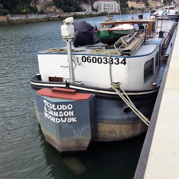 TESTUDO sont les deux derniers 38 mètres chargés à avoir fait la Meuse française en entier ; c'était dans le sens Givet - Troussey, avec des engrais chargés à Anvers. Le premier allait à Villefranche-sur-Saône et le second, à Chalon-sur-Saône. C'était en septembre 2021.