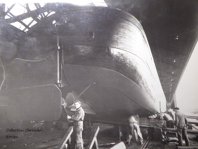 Voici un complément photo de la construction de ce bateau jusqu'à son inauguration ; sur le chantier en février 1950 et inauguration le 22 mars 1950.