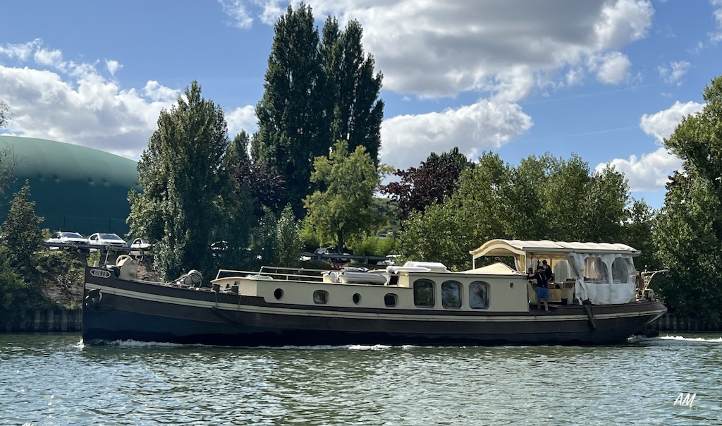 Christian Barthe, créateur du Chantier Naval du Lot et Garonne le sauve du déchirage et le transforme en bateau logement.