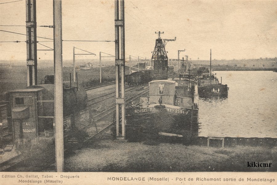 Elle n'est pas datée, mais je pense qu'elle remonte aux années 30. Le lieu, c'est en Moselle, sur le CAnal des MInes de FEr de la MOselle (CAMIFEMO), au port de Richemont. La ville de Rombas ne se trouvant pas au bord de l'eau, à quelques kilomètres de là, c'est le port le plus proche, excepté le port de l'Union des Consommateurs de Produits Métallurgiques et Industriels (UCPMI) au bout de l'embranchement d'Hagondange, mais qui était, me semble-t-il, un port privé.
