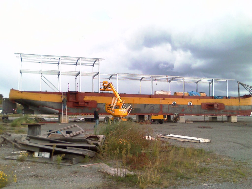 - redécoupé en deux parties, à nouveau posées sur des porte-chars :