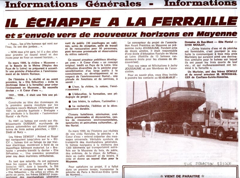 7ent - Tous les chalands et bateaux de la société et notamment :