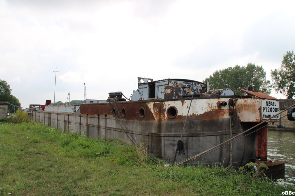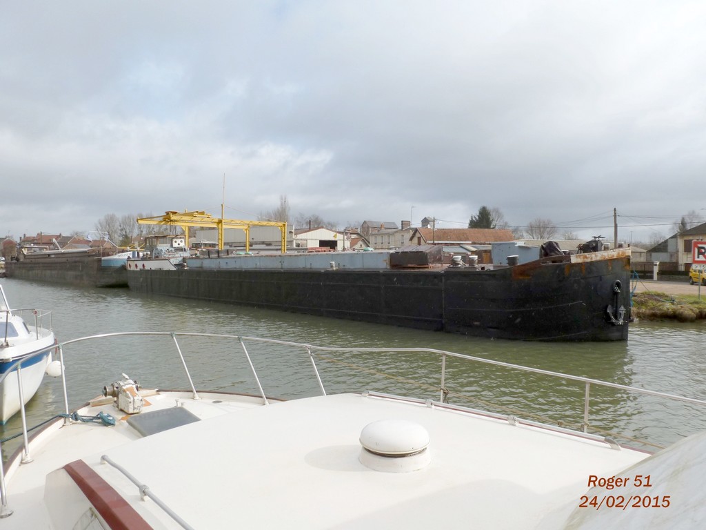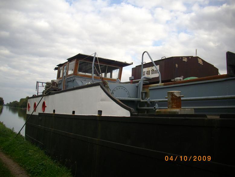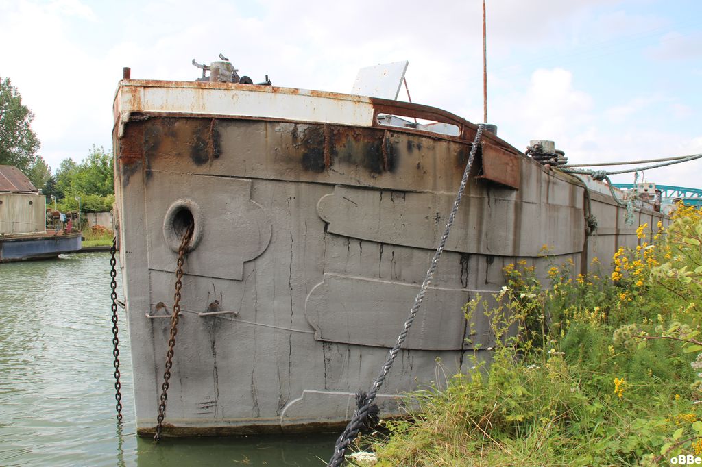 Vu à l'instant amarré à l'aval de l'écluse de Sempigny, rive gauche : le cul est coupé, ce qui reste à été repeint. Et des treuils de brêlage ont été installés...