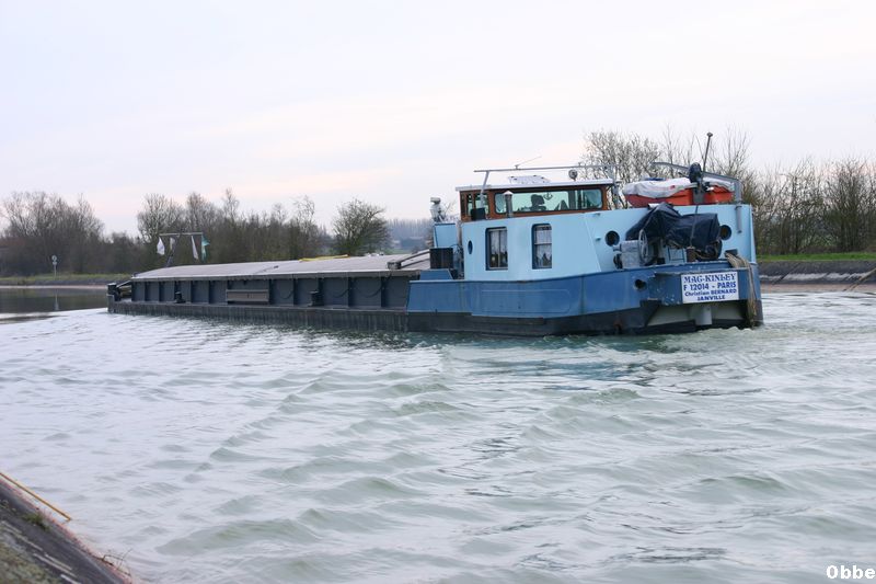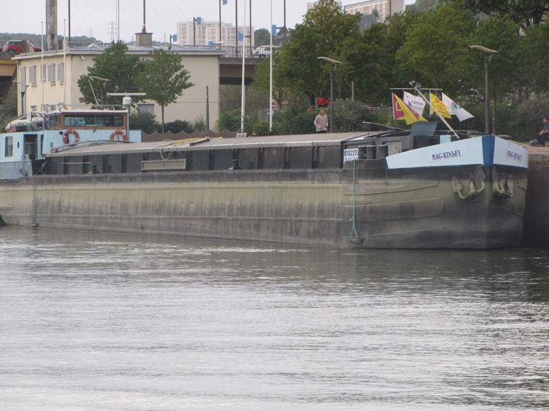 Mac-Kinley , 59,60 x 5,76 x 2,90 , 750 ton , Bouwjaar 1948 , Werf Jerrikan in Dunston ( Groot-Brittannië ) , 275 pk Detroit , ex Suda , ex Aurobruno , eigenaar Christian Bernard in Parijs , ENI 01822516