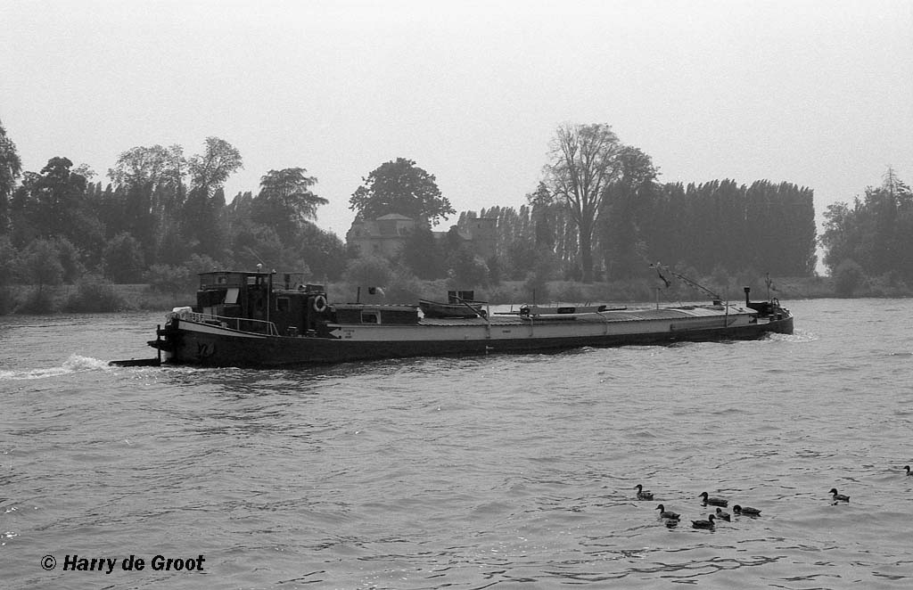 Son precedent proprietaire se nommait monsieur Mare. La particularite de ce bateau tient au fait que la cabine (en bois), pouvait se deplacer d'une dizaine de metres vers l'avant, sur des roulettes reposant sur des rails, a l'interieur des hiloires. Cette operation consistait a tirer la cabine au moyen d'un câble relie au treuil avant. L'espace sous la cabine se trouvant ainsi libere, facilitait l'operation de chargement et dechargemnt (charbon ; cereales).
