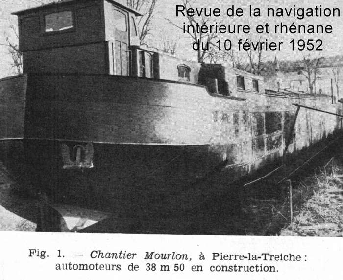 On apprend dans "Revue de la navigation intérieure et rhénane" du 10 juillet 1958 quelques informations concernant le travail du chantier Mourlon de Pierre-la-Treiche pour le renouvellement du parc fluvial français, avec la "série Nancy" de la SRPF, appelés "mixtes" par les mariniers : l'avant et l'arrière construits par la société Leffer, la partie centrale et l'aménagement réalisés par les chantiers Mourlon et Broutin : l'article d'Henry de Goriainoff, ingénieur civil du Génie maritime, est à retrouver ICI.