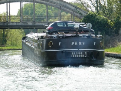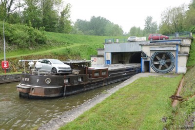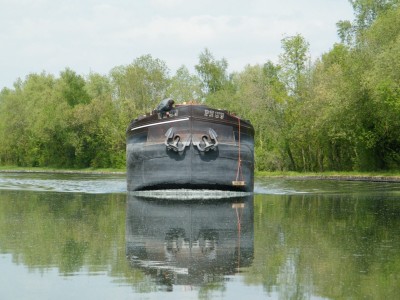 - mai 2023, voûte de Braye sur le canal d'Abbécourt : l'ancienne marquise, avec de l'orge de Château-Porcien (08) pour Dunkerque