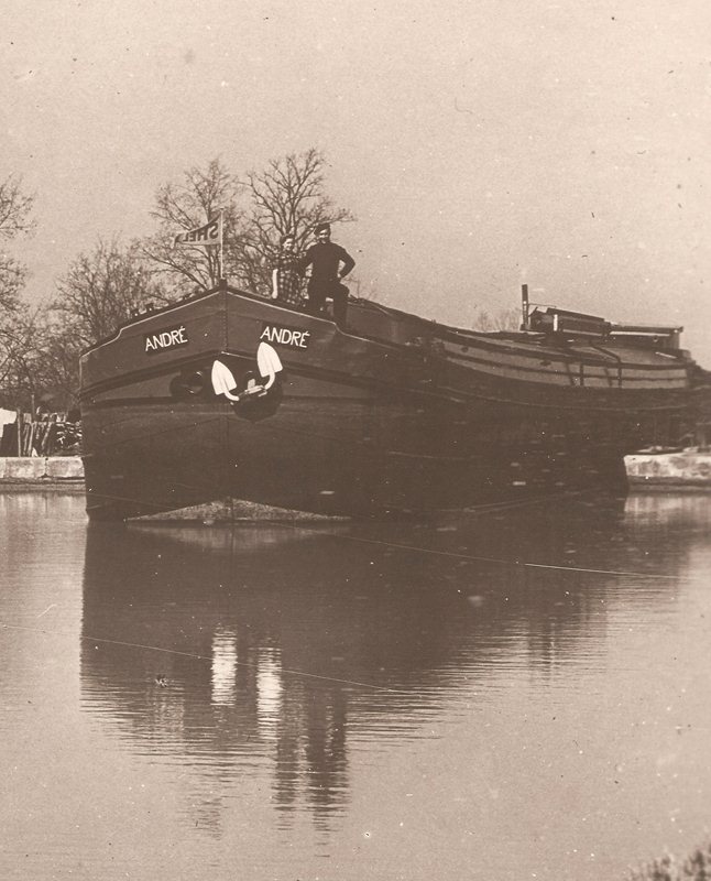 Ce bateau apparaît aussi sur cette jolie CPSM de Saint-Symphorien-sur-Saône, écluse 74 du canal du Rhône au Rhin, à quelques dizaines de mètres de son débouché en Saône, à val de l'écluse 75 :
