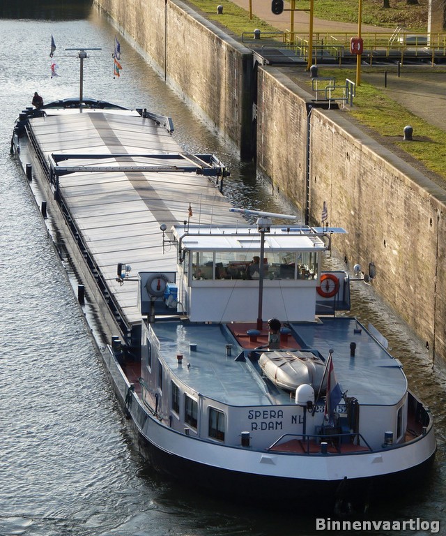 Spera , 74,84 x 8,20 x 2,60 , 1047 ton , Bouwjaar 1957 , Werf Ewald Berninghaus in Duisburg ( Duitsland ) , 750 pk Mitsubishi en 200 pk DAF boegschroef , ex Wilhelm , ex Zobten , ex Romantica , eigenaar VOF Spera in Rotterdam , ENI 02318157.