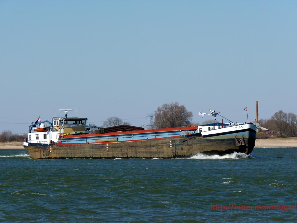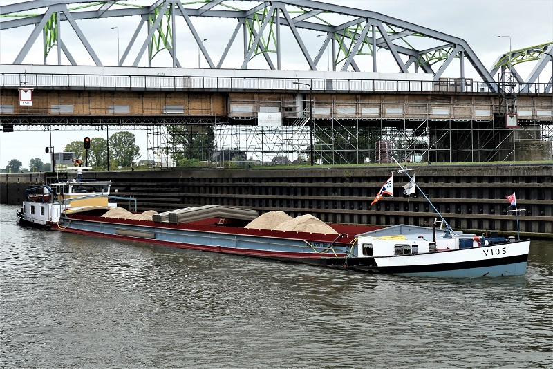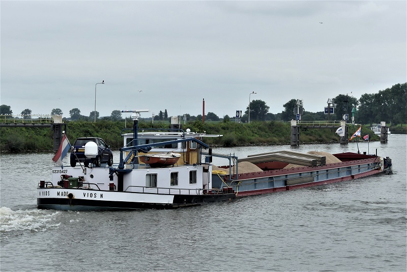 Vios , 57,35 x 7,03 x 2,67 , 728 ton , Bouwjaar 1954 , Werf Meidricher Schiffswerft in Duisburg ( Duitsland ) , 550 pk Volvo en 200 pk DAF boegschroef , ex Vios , eigenaar M.L.P.C. van der Pluijm in Made , ENI 02315427