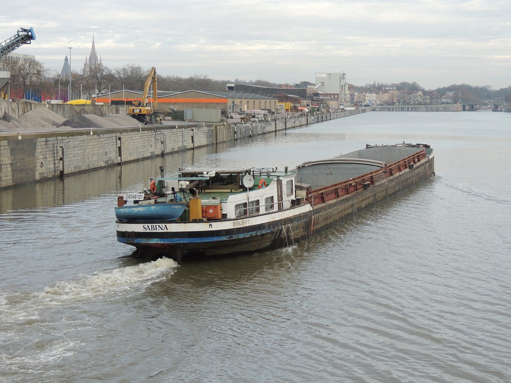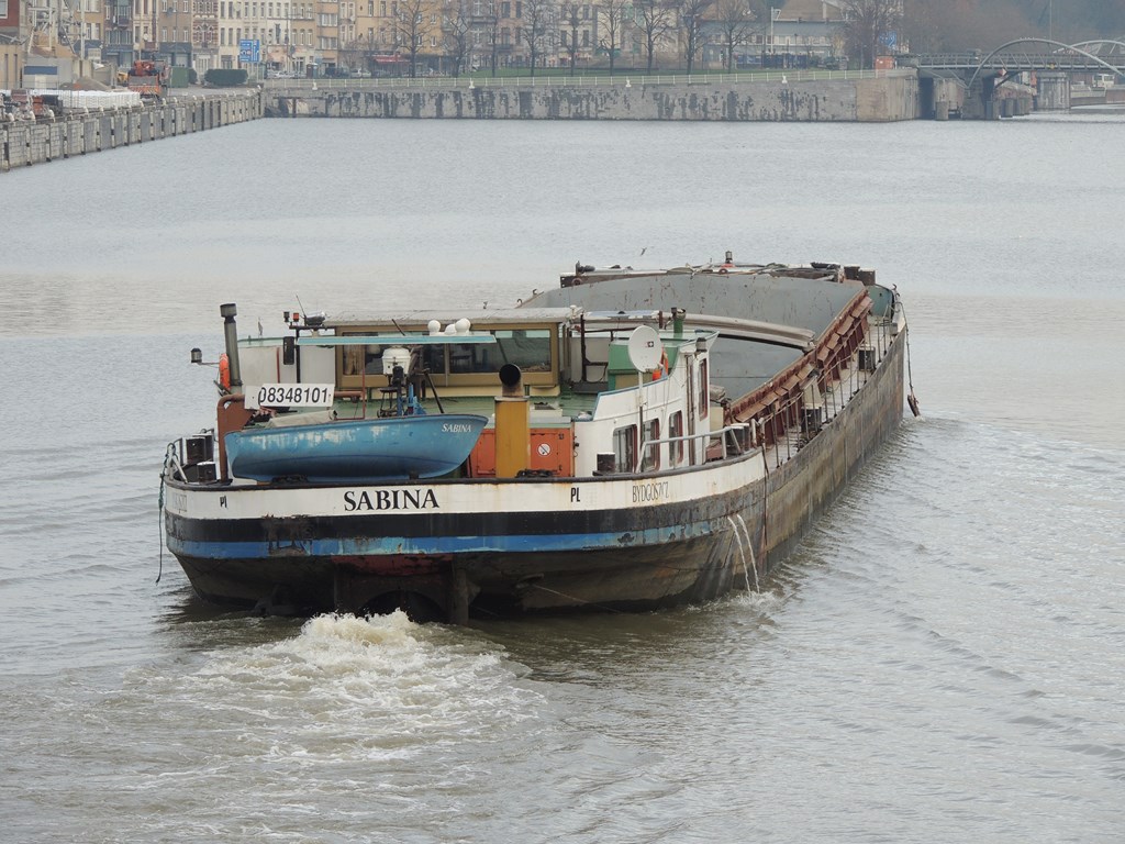 Sabina , 67,00 x 8,20 x 2,50 , 998 ton , Bouwjaar 1934 , Werf Meidricher Schiffswerft in Duisburg ( Duitsland ) , 620 pk Deutz , ex Max Grassmann , ex Sabine , eigenaar Transbode Spolk Jawna Z Bogumil in Szczecin , ENI 08348101