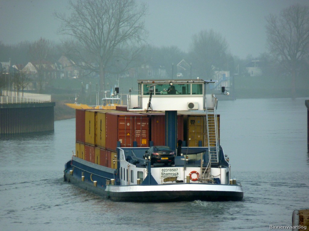 Shamrock , 80,30 x 9,55 x 2,72 , 1363 ton , Bouwjaar 1959 , Werf Ruhrorter Schiffswerft in Duisburg ( Duitsland ) , 1014 pk Caterpillar , ex Kralingen , ex Tornado , ex Caan , eigenaar Vof.Shamrock in Nijmegen , ENI 02310507