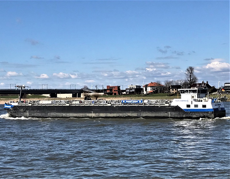 Rain Empress , 67,00 x 7,15 x 2,80 , 832 ton , Bouwjaar 2019 , Werf Neue Ruhrorter Schiffswerft in Duisburg ( Duitsland ) en Scheepstechniek Drechtsteden in Dordrecht ( Nederland ) , 2 x 405 pk Cummins en 350 pk Verhaar VSB 800 boegschroef , eigenaar Eiltank Schiffahrt GmbH & Co Flüssigtransport KG in Duisburg , ENI 04813510