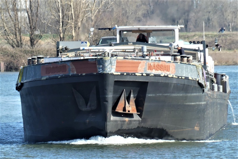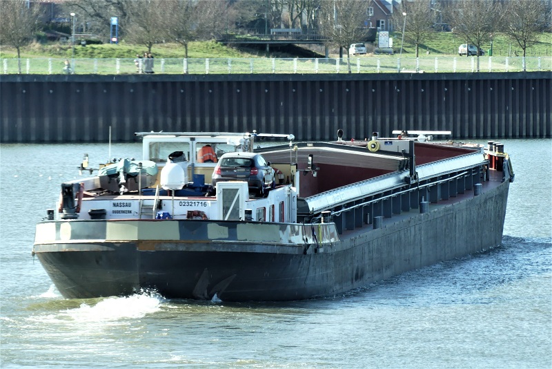 Nassau , 84,90 x 9,00 x 2,73 , 1397 ton , Bouwjaar 1973 , Werf Deutsche Industrie Werke in Berlin ( Duitsland ) , 900pk Deutz en 320 pk DAF boegschroef , ex Tiger , ex Shalimar , ex Mariëlle , eigenaar Scheepvaartbedrijf Trouwborst in Ouderkerk , ENI 02321716