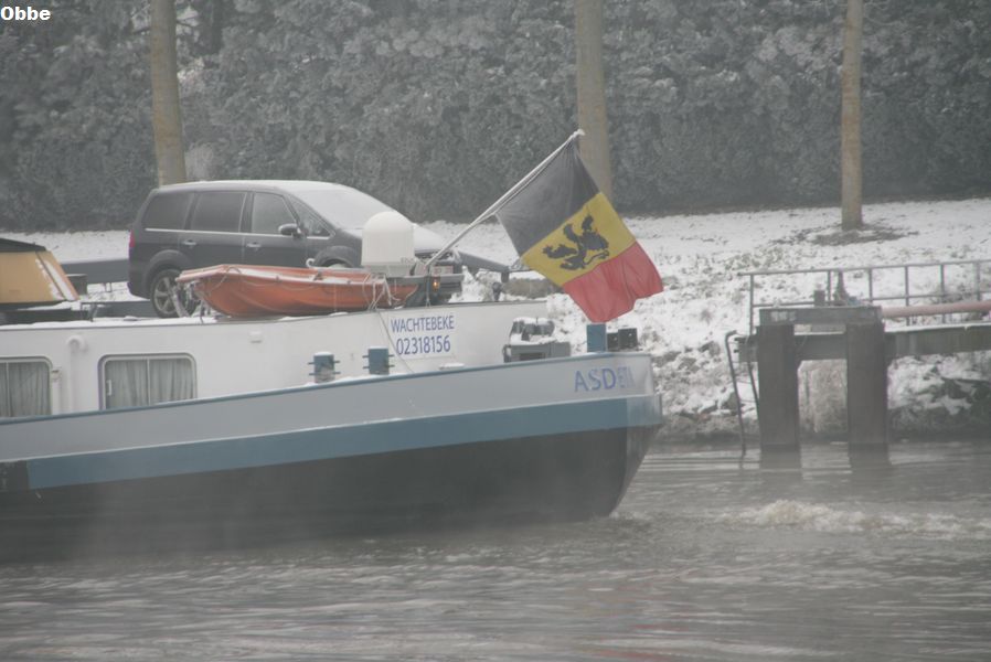 Asdeta , 85,90 x 9,50 x 2,70 , 1519 ton , Bouwjaar 1971 , Werf Deutsche Industrie Werke in Berlin-Spandau ( Duitsland ) , 1014 pk Caterpillar en 320 pk DAF boegschroef , ex Lüssen 12 , ex Lutin II , ex Zafferno , eigenaar G. Hellebosch in Wachtebeke , ENI 02318156