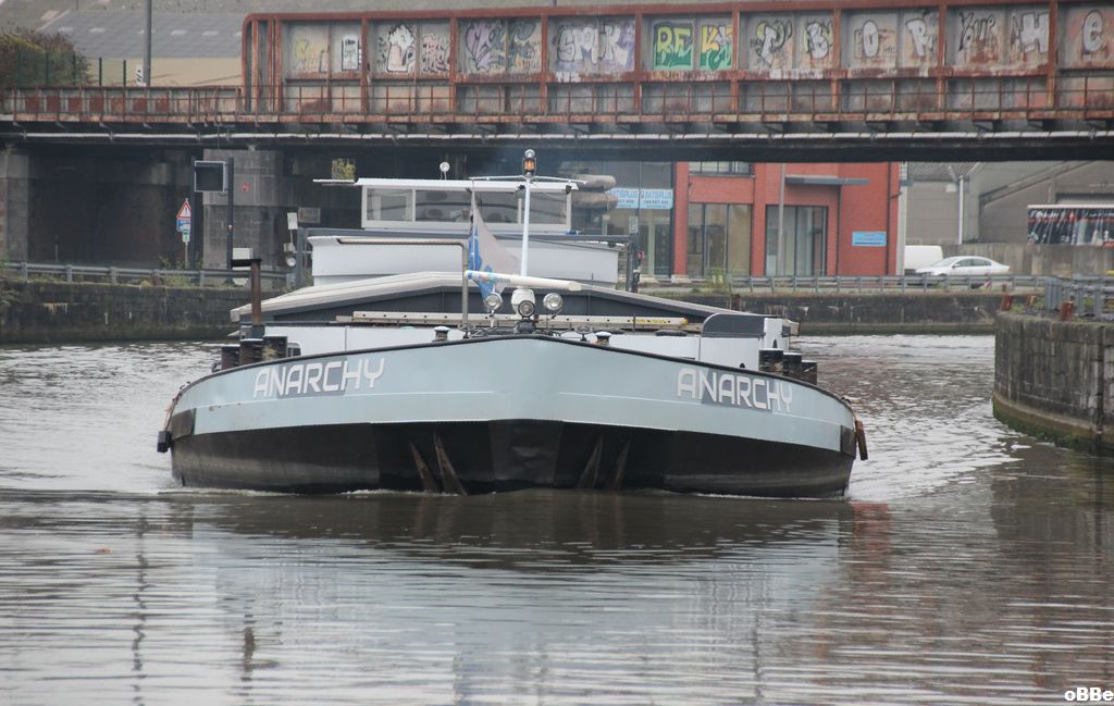 Anarchy , 109,94 x 9,52 x 2,95 , 2206 ton , Bouwjaar 1969 , Werf Deutsche Industrie Werke in Berlin ( Duitsland ) , 1200 pk Cummins en 440 pk Cummins boegschroef , ex Anita , ex Kay Luna , ex Adma , ex Ger-Jan , ex Marte Meo , ex Keiko , eigenaar Barge Trading S.A.S. in Douai , ENI 06003983