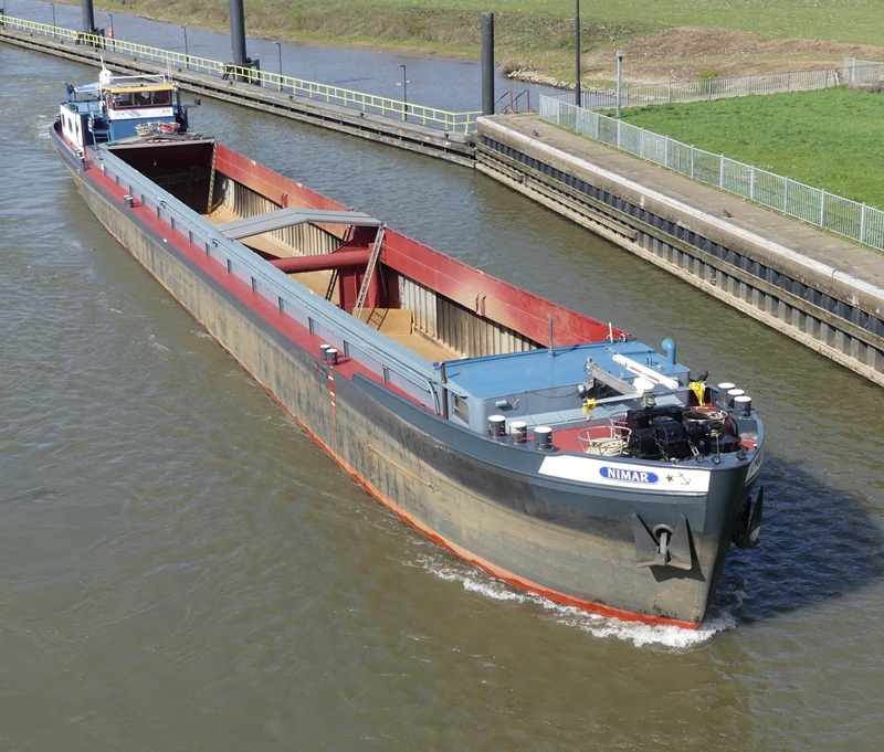 Nimar , 64,75 x 6,34 x 2,49 , 652 ton , Bouwjaar 1960 , Werf Lankewerft in Berlin-Spandau ( Duitsland ) , 480 pk Cummins en 220 pk DAF boegschroef , ex Schieland , ex Dorris , ex Shalom , ex Con Amor , eigenaar G. Valkhof in Helmond , ENI 02313277