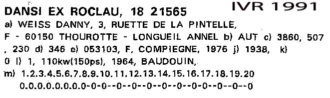 Numéro IVR 1821565 et une autre matriclue comme Co 3103