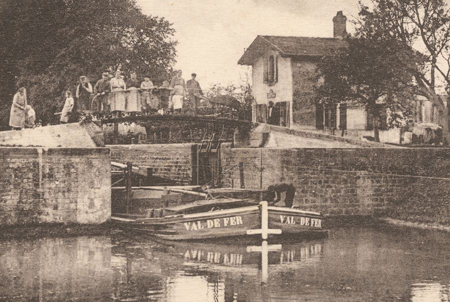 - sortie d'écluse, à Dombasle-sur-Meurthe ; la carte postale a voyagé en 1926 :