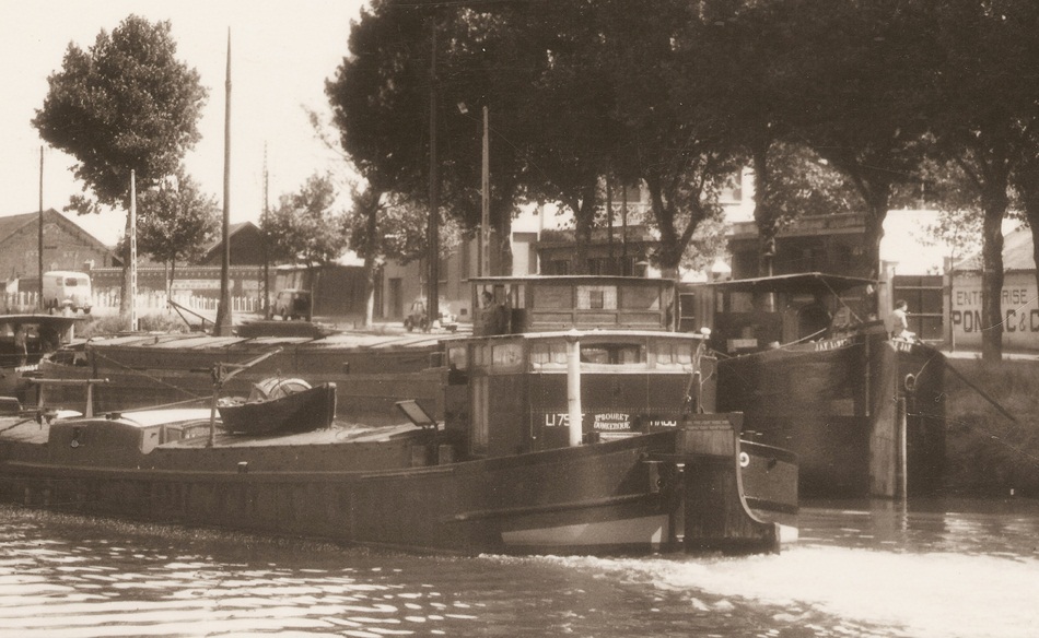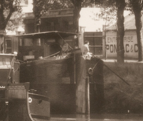... on voit pas mal de bateaux, dont l'un, amarré à la rive opposé au photographe, nous laisse entrevoir sa devise et son matricule :