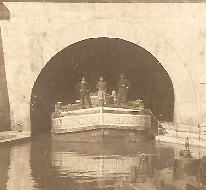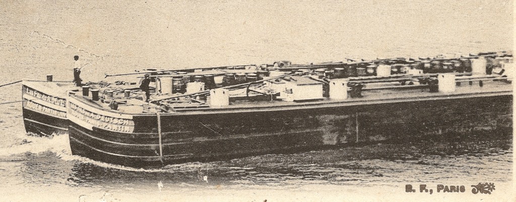 Sur celui qui est du côté du photographe, on lit : LES FILS DE A. DEUTSCH - ROUEN - PARIS - PANTIN, et sur l'autre, LES FILS DE A. DEUTSCH - ROUEN - PANTIN - JUV... (la fin est cachée par le premier bateau, mais je pense à Juvisy ?)