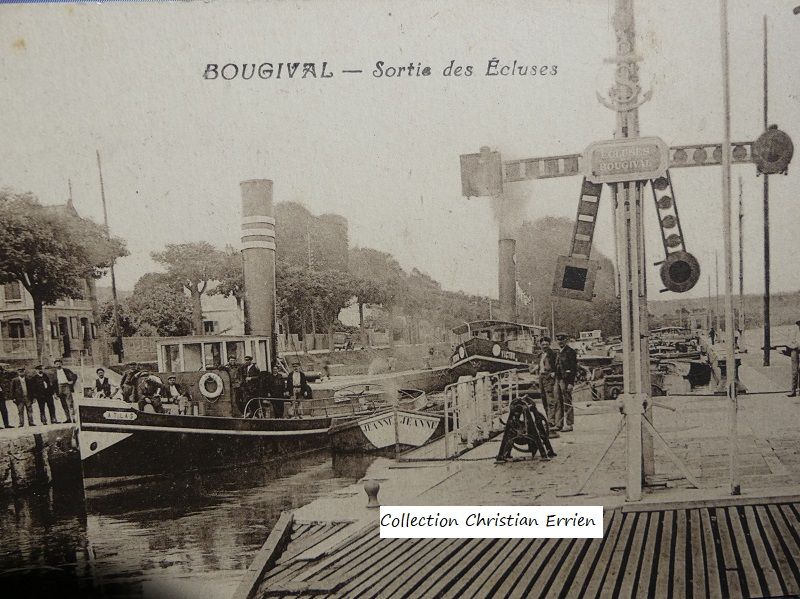 une belle carte de Bougival avec deux remorqueurs ATLAS que je ne connais pas et