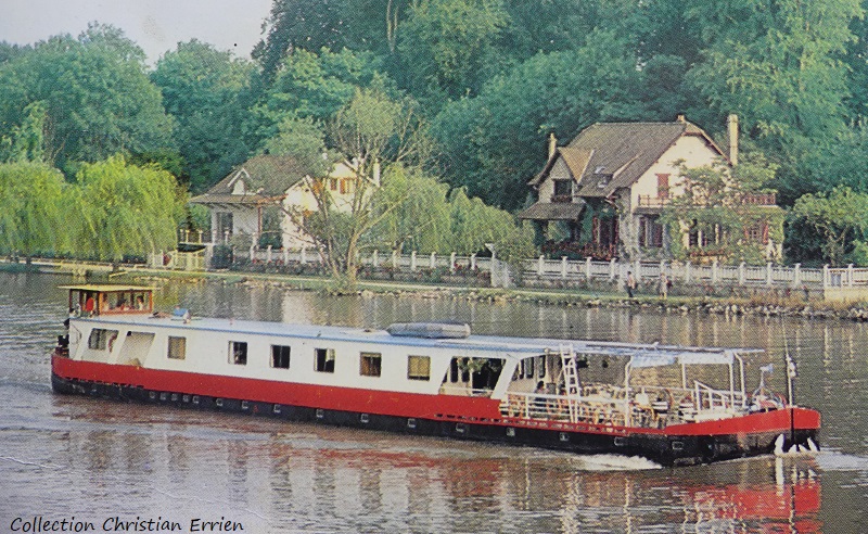 sur cette carte postale que je situe à Samois sur Seine , vue prise du pont de Fontaine le port un bateau hôtel. La légende dit "La Guêpe Buissonnière Cruising" , je ne pense pas que ce soit la devise de ce bateau.