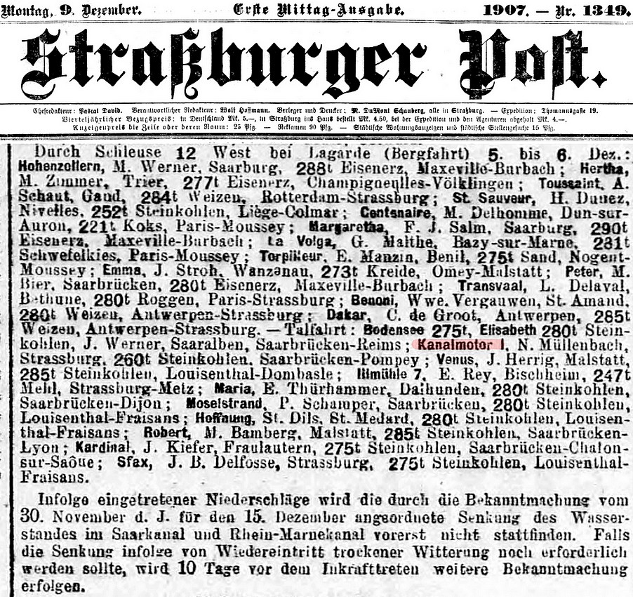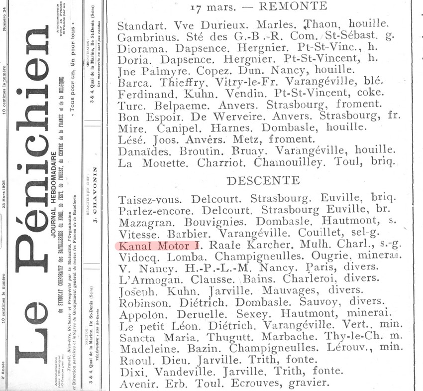 Il y a, entre autres, 2 bateaux à moteurs de la maison Raab Karcher, avec l'inscription « KANAL-MOTOR » N°1 et 2. Les bateliers cherchent à rattraper le temps perdu par le chômage.