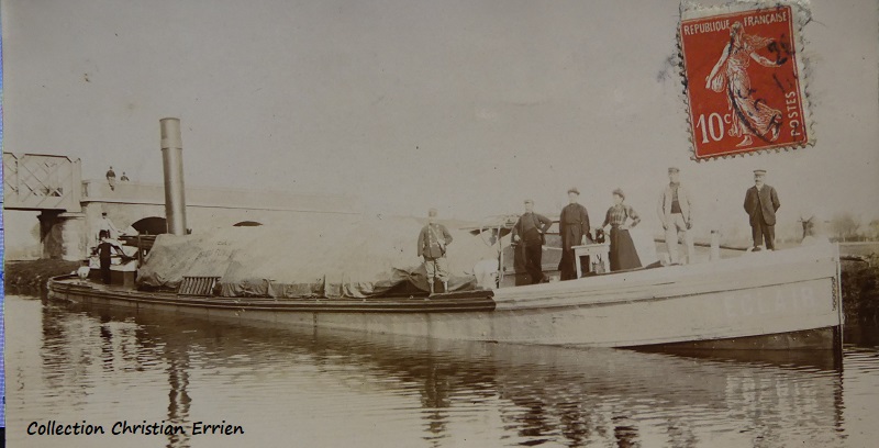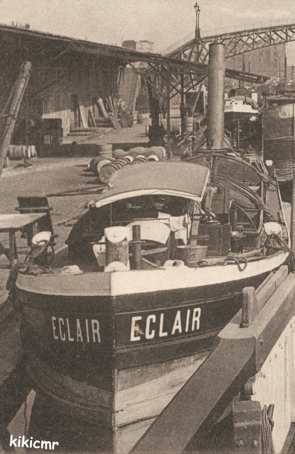 Une nouvelle carte photo écrite à Paris (le cliché a certainement été pris ailleurs). Dans le texte il est question du bateau ECLAIR . On dirait les bateaux construits à Argenteuil où Compiègne.