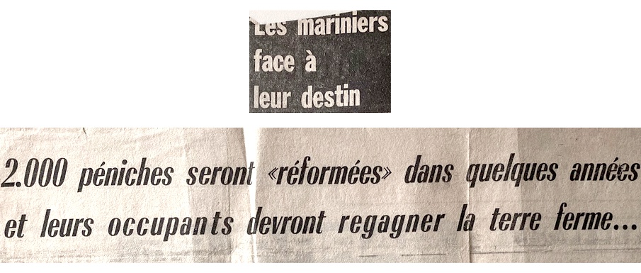 2.000 péniches seront réformées dans quelques années et leurs occupants devront regagner la terre ferme...