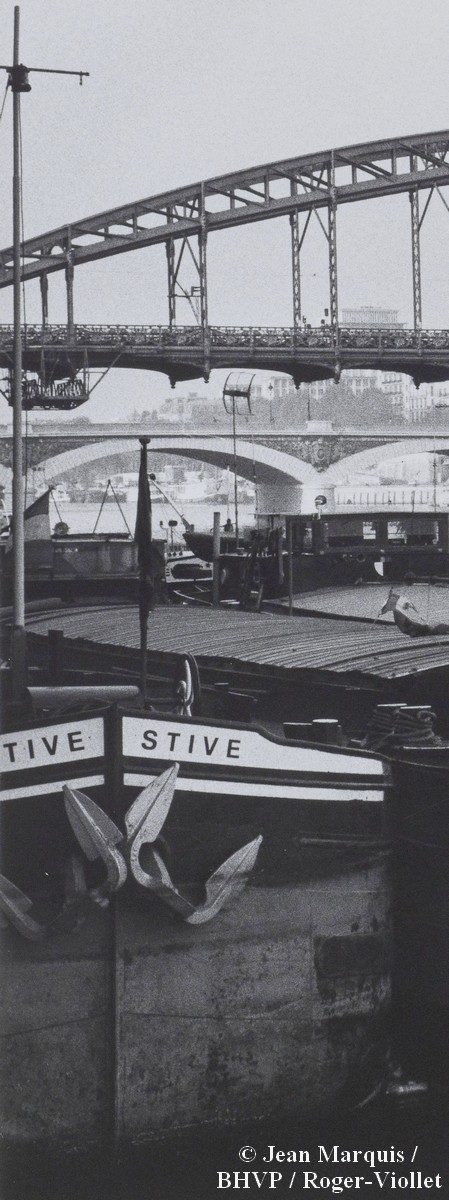 Sur le site bibliotheques-specialisees.paris.fr, on trouve cette photo de Jean Marquis (1926-...), photographe, dont le titre est « Le Viaduc du métropolitain d'Austerlitz ; vue prise vers le quai de la Rapée ; au premier plan des péniches amarrées port d'Austerlitz », sans date précisée :