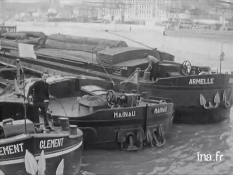 INA, l'émission Rond-Point du 12 avril 1969 consacrée au port d'Austerlitz ; on y voit ces trois bateaux à quai :