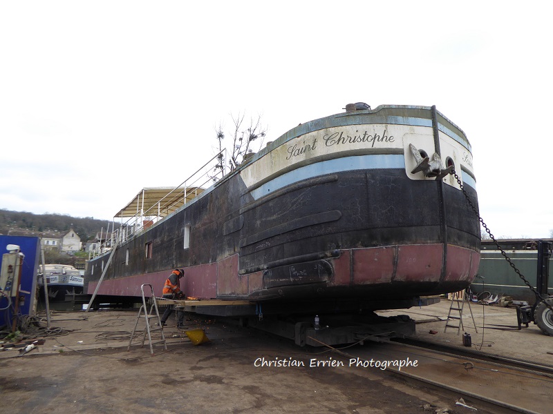 Il est au chantier des hauts de Lutèce à Thomery pour se refaire une beauté (doublage de la coque au niveau de la ligne de flottaison) Son immatriculation P 15380 F n'est sûrement pas d'origine.