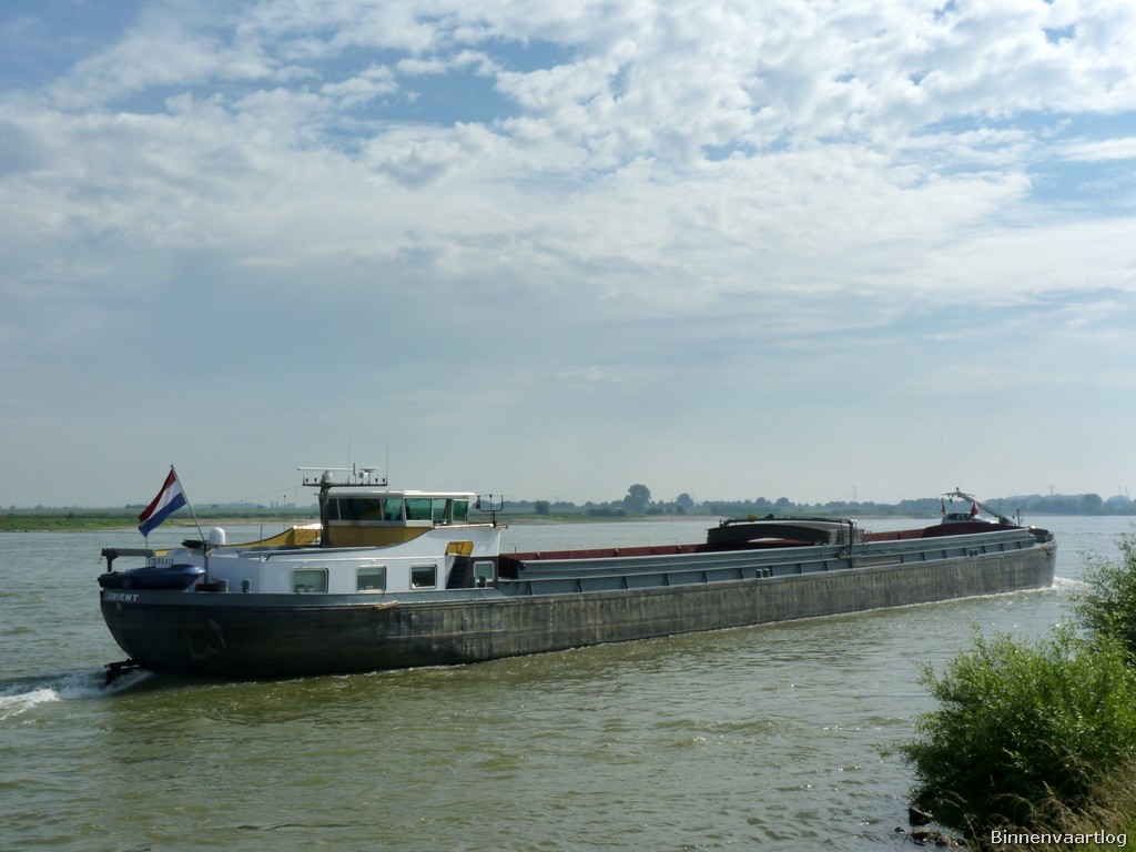 Orient , 74,96 x 8,24 x 2,61 , 1150 ton , Bouwjaar 1961 , Werf Cassens in Emden ( Duitsland ) , 640 pk Caterpillar en 200 pk DAF boegschroef , ex Dattlen, ex Maasstroom II , ex Atlantis , ex Antartica , ex Ardito , eigenaar Vof Orient Scheepvaart in Werkendam , ENI 02006412