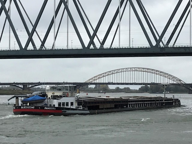 Pandora , 85,00 x 9,50 x 3,20 , 1716 ton , Bouwjaar 1969 , Werf Cassens in Emden ( Duitsland ) , 1521 pk Caterpillar en 320 pk DAF boegschroef , ex Regensburg , ex Heidrun Arntz , eigenaar S.D. Hagenaar in Sliedrecht , ENI 02317993