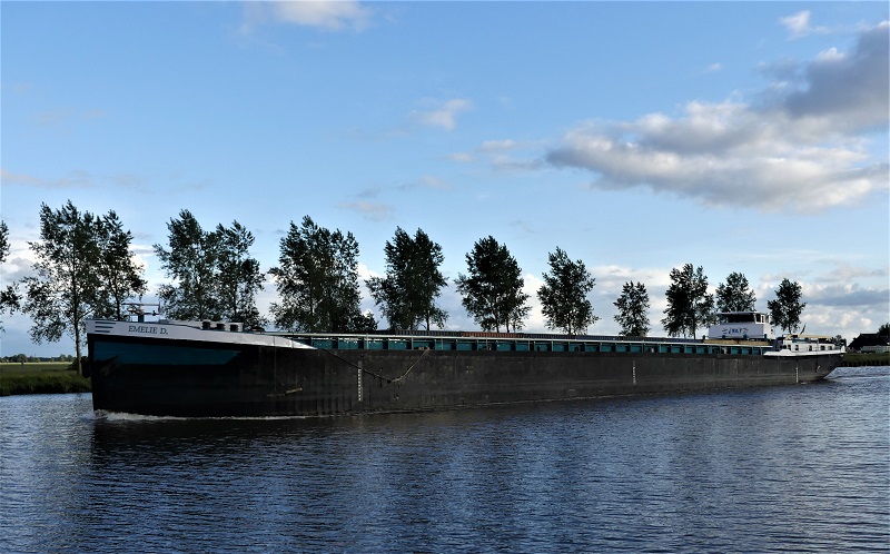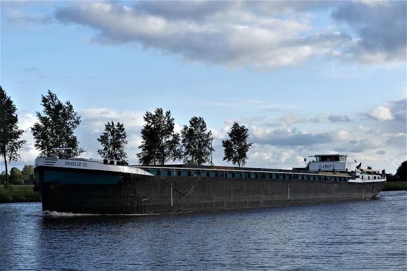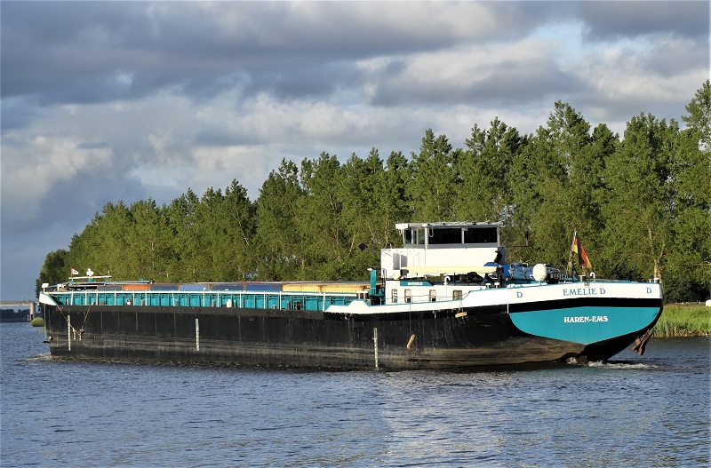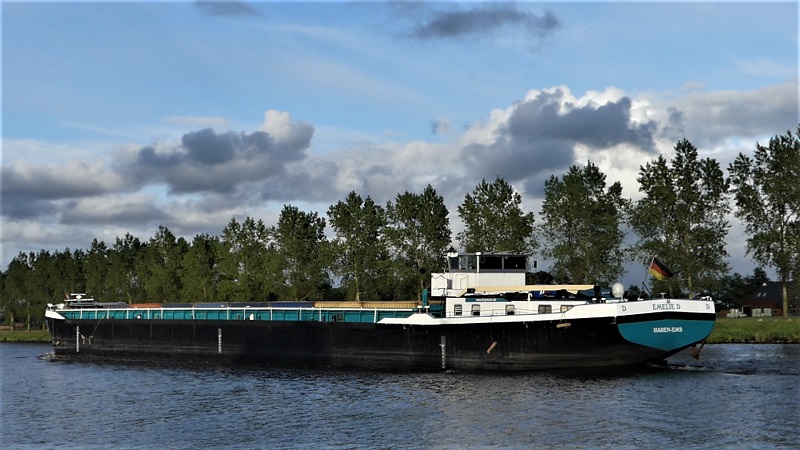 Emelie D , 84,82 x 9,50 x 3,00 , 1603 ton , Bouwjaar 1976 , Werf Gebr. Elfring in Haren Ems ( Duitsland ) , 1320 pk SKL en 360 pk Scania boegschroef , ex Mäander , ex Neeltje K , ex Forens , ex Sibajak , ex Nocotrans , ex Viking , ex Enterprise , eigenaar N.W.L. Deymann in Haren Ems , ENI 02314780