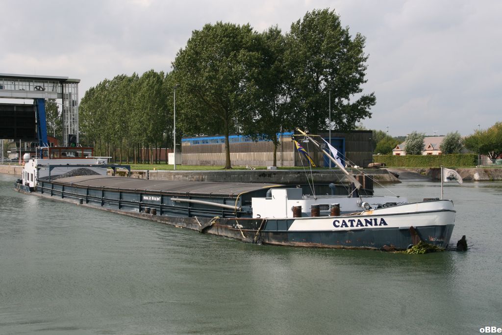 Catania , 66,90 x 8,18 x 2,52 , 890 ton , Bouwjaar 1957 , Werf J.G. Hitzler in Lauenburg ( Duitsland ) , 730 pk Caterpillar en 320 pk DAF boegschroef , ex Neska 92 , ex Henri M , ex Denzo , ex Inge , eigenaar M. Borgo in Gent , ENI 06004254