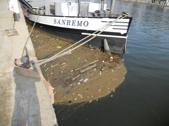 A la même écluse de Floriffoux sur la Sambre, le Pareatis croise le SAN REMO ex Conspiro, ex Conolia, ex Candia, ex Donau Maru; construit en 1954 au chantier J.G. Hitzler à Lauenburg en Allemagne; 80 x 8,25 m. et 1146 T.