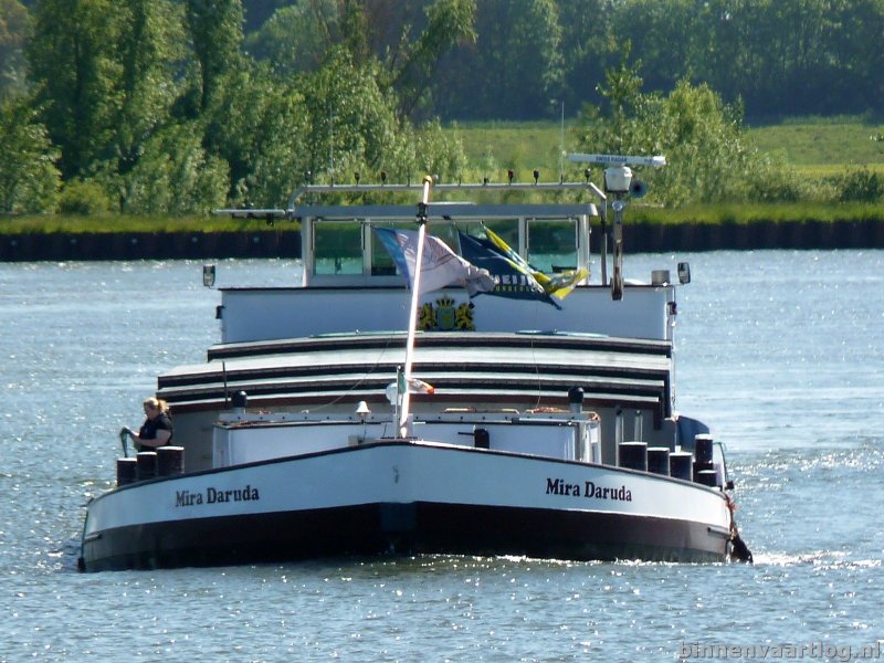 Mira Daruda , 73,03 x 8,20 x 2,82 , 1153 ton , Bouwjaar 1963 , Werf Weserwerft, Minden ( Duitsland ) , 900 pk Wärtsilä en 300 pk DAF boegschroef , ex Rhenus 107 , ex Rapid , ex Alpha , ex Golden River , ex Diligent , eigenaar Mira Forti NV (J. van Sandijk & K. Romeijnders) in Maasbracht , ENI 02314193
