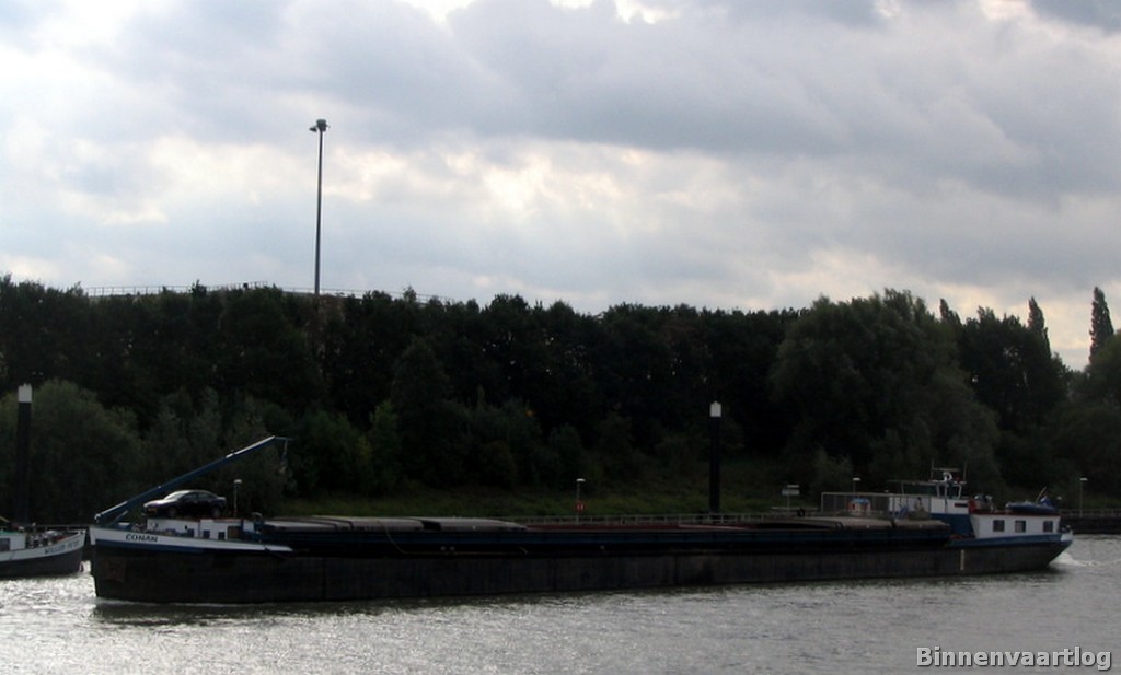 Conan , 79,90 x 8,20 x 2,68 , 1192 ton , Bouwjaar 1958 , Werf Weserwerft in Minden ( Duitsland ) , 800 pk Cummins en 220 pk DAF boegschroef , ex Rhenus 104 , ex Rapid , ex Gemmy , ex Conan , eigenaar Vof Nesco in Zwijndrecht , ENI 02316126