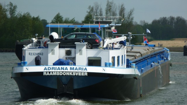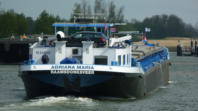 Adriana Maria , 110,00 x 10,50 x 3,18 , Bouwjaar 1988 , Werf Hermann Sürken in Papenburg ( Duitsland ) en de Gelria in Nijmegen ( Nederland ) , 1521 pk Caterpillar 330 pk Scania Veth-Jet boegschroef , ex Libre II , ex Comus 2 , ex Servus , ex Variable , ex Vigilate , ex Kalimera , ex Invado , eigenaar Buijks in Raamsdonksveer , 02324942