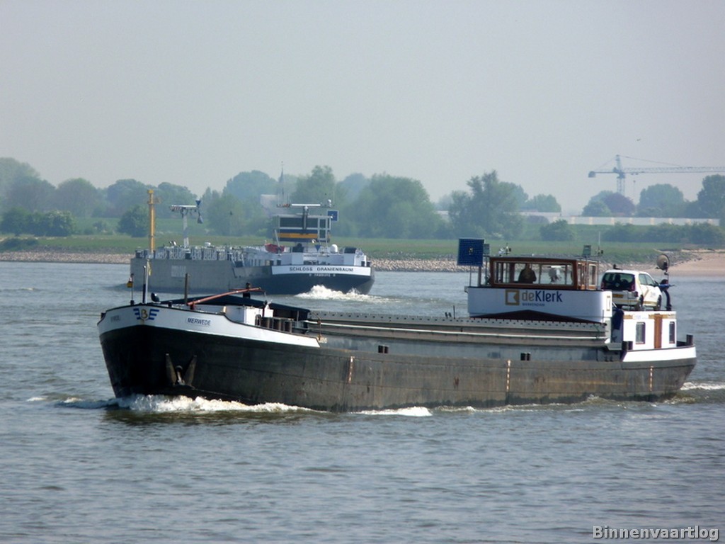 Merwede , 57,00 x 7,23 x 2,52 , 682 ton , Bouwjaar 1956 , Werf Sching & Rosemeijer in Uffeln ( Duitsland ) , 371 pk Caterpillar , ex 2 x Noviomagum II , ex Neptunus V , ex 2 x Hendrikus , ex Betuwe , eigenaar Aannemingsbedrijf de Klerk BV in Werkendam , ENI 03310415