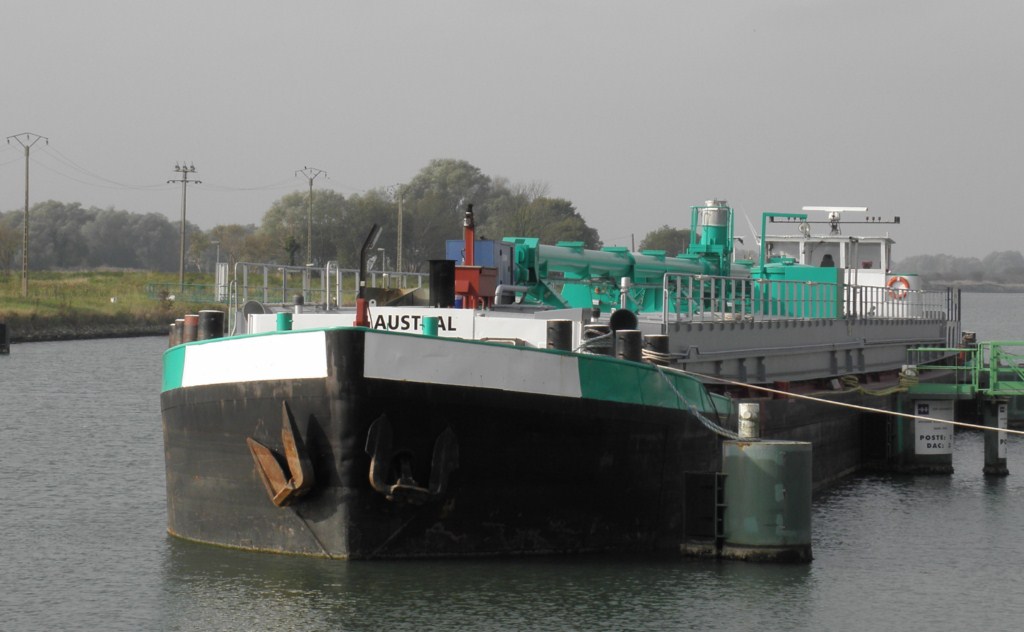 Le AUSTRAL est devant l'ecluse de Tancarville sur les pieux...