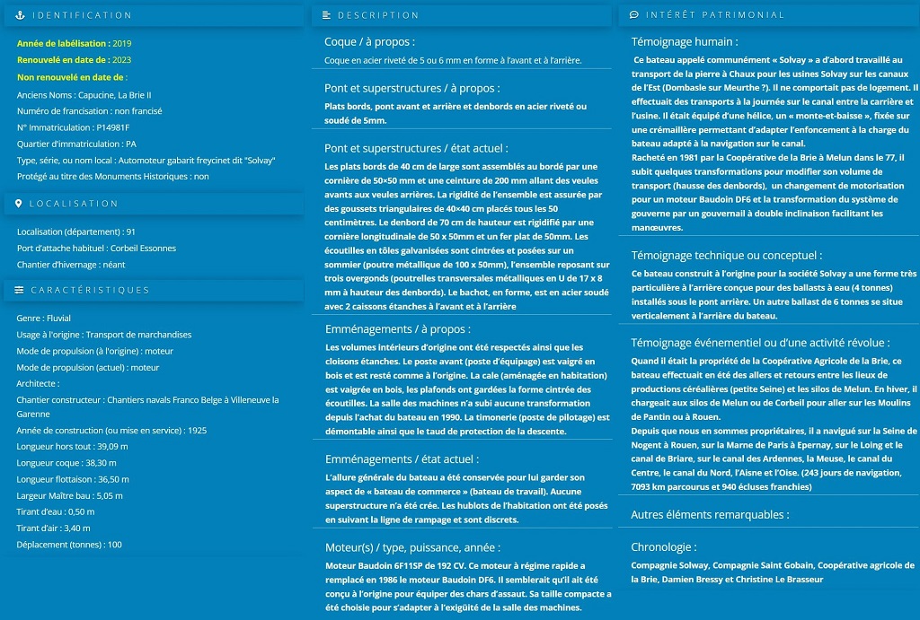 Type de bateau : automoteur ponté