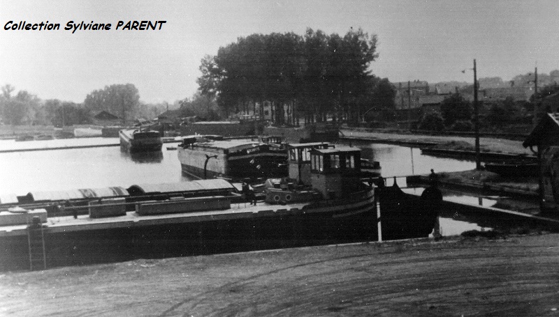 Vendu à la societé BROUTIN à Laneuveville en 1955, qui le mit aux nomes Freycinet, en le portant a 38,50m et en enlevant les cuves. Il devient ELMERY. Sur cette photo, il est dans le cul de sac du large de Dombasle, son lieu de déchargement, où il vidait. A son bord, le SOLVAY 3 :