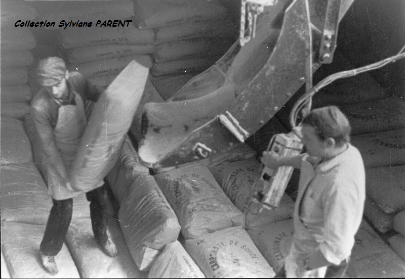 Oui, il est chargé de sacs de 50kg de soude pour Anvers. Dans les années 50, c'était des sacs en jute de 100kg ! Le chargement de sacs à Dombasle était à la même place que le chargement de soude en vrac.